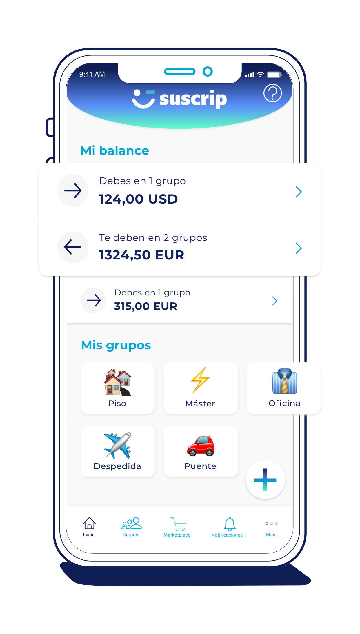 Conoce el total que te deben y el que debes en todos tus grupos. Crea todos los grupos que quieras, no hay límite.
