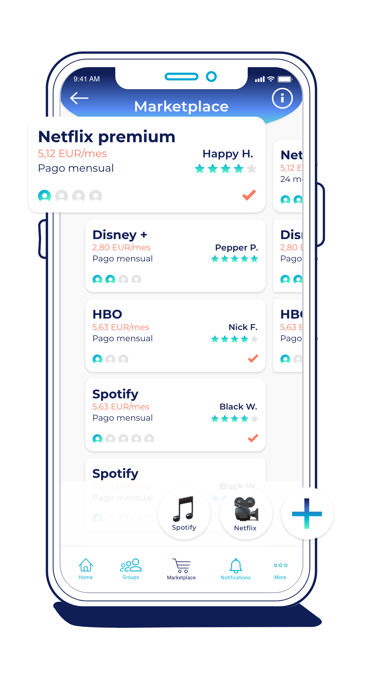 Ahorra compartiendo tu suscripción o apúntate como participante a la de otros usuarios en nuestro Marketplace de suscripciones.